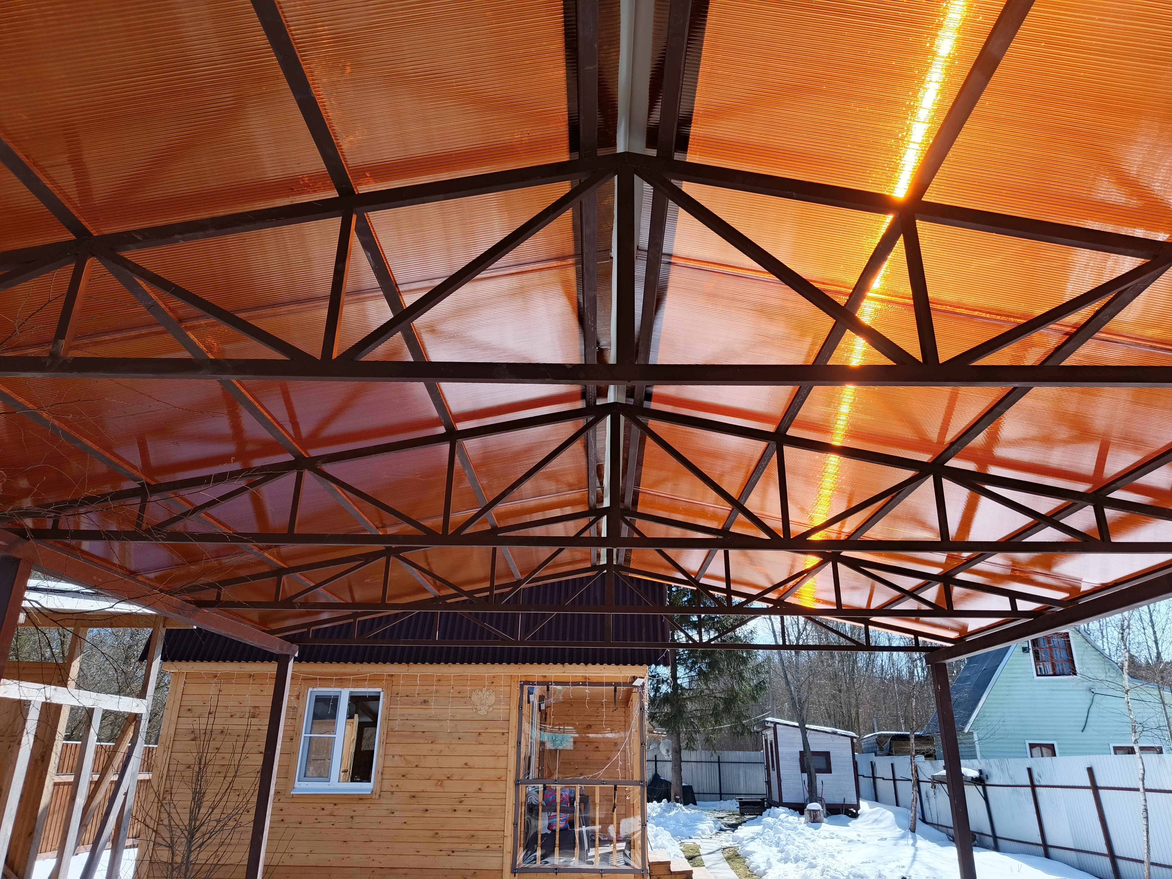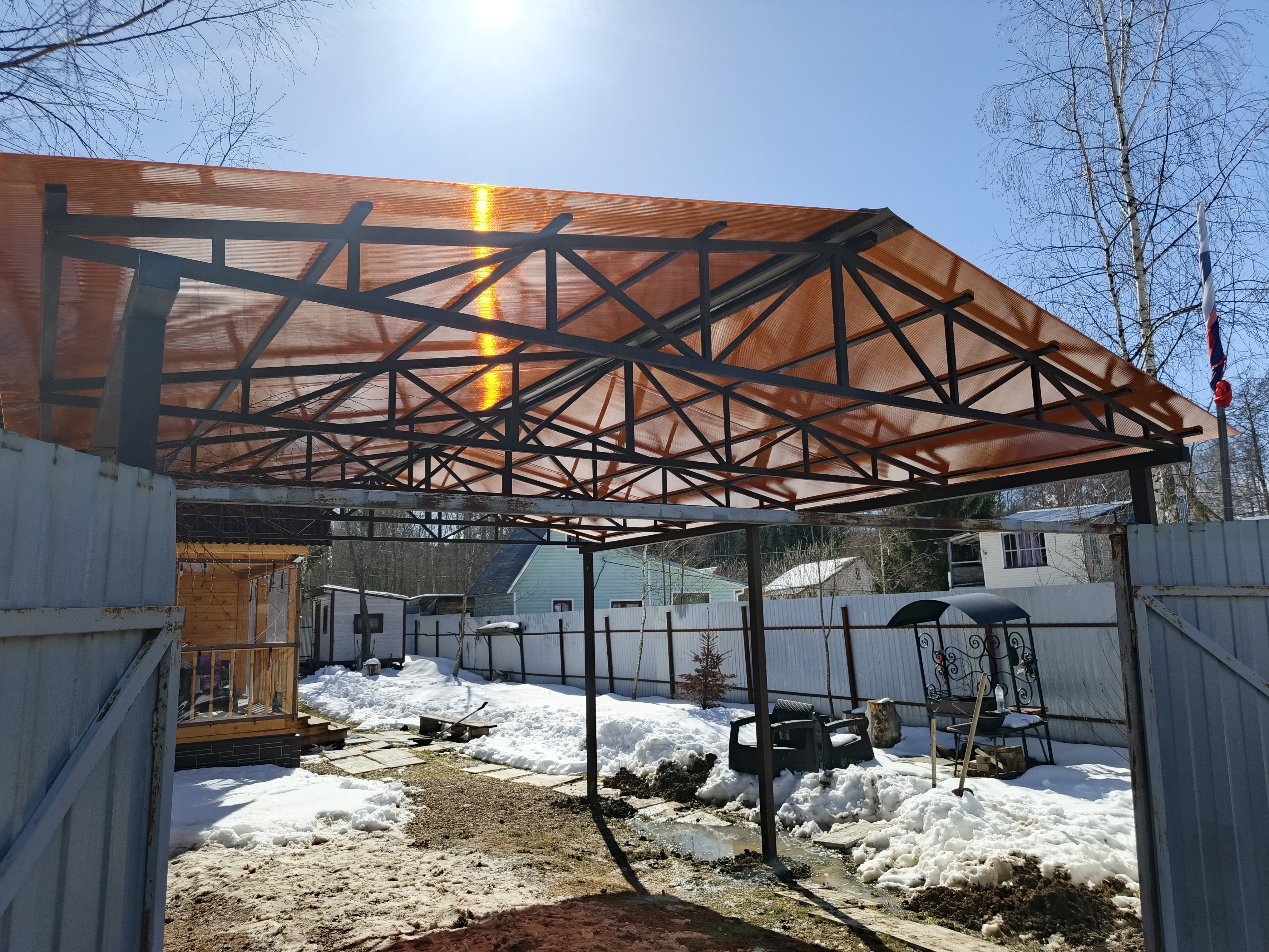 Двухскатный навес из поликарбоната